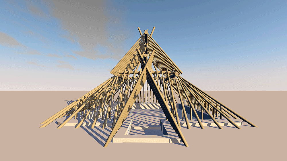 Materials: Wood roof structure over earthen depression; thatch roof.