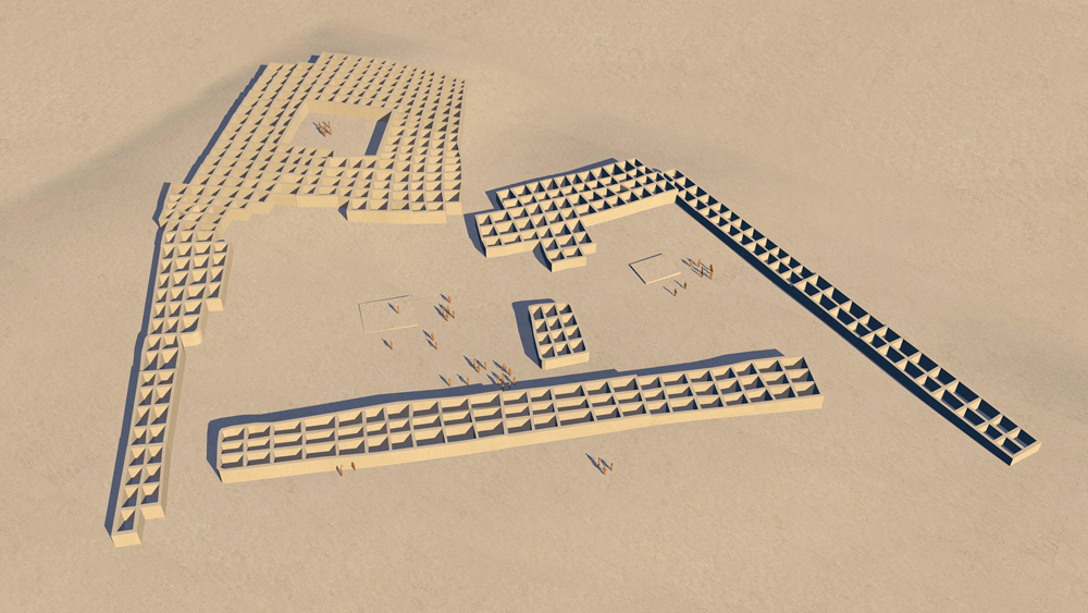 Plan view with scale and orientation. Data source for this CG model: 1. Spier, Leslie, 1918 . "Notes on Some Little Colorado Ruins", Anthropological Papers of the American Museum of Natural History, vol 18, pt 5. 1918. 2. Shumway Archaeologica Project: https://www.uvm.edu/~svankeur/SHAP/project_area/fourmile_ruin/fourmile.htm 3. Johnson, Douglas, 2022. Adobe Brick Architecture and Katsina Ceremonialism at Fourmile Pueblo. Second Books, Albuquerque, NM, 2022.