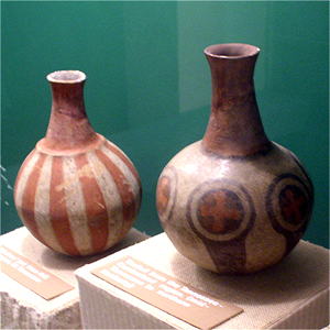 Above: Objects found at Moundville Archaeological Park, left to right: Stone duck effigy bowl, rattlesnake disk, and ceramic pottery. Mississippian Culture, built and inhabited from 1000 C.E. to 1450 C.E., located near Tuscaloosa, Alabama, on the Black Warrior River. Consisting of 29 platform mounds, the site is the second largest mound site of the classic Middle Mississippian era, after Cahokia in Illinois. Major Mound A is in the center of the site plaza, with 68 foot tall steep pyramidal Mound B to its north. The site was protected on three sides by a curved wooden palisade and on the north by the river bluff. Elevation is 51 meters (167 feet) above sea level. Materials: earthen mounds and pole and thatch residential lodges. Data for CG model: |