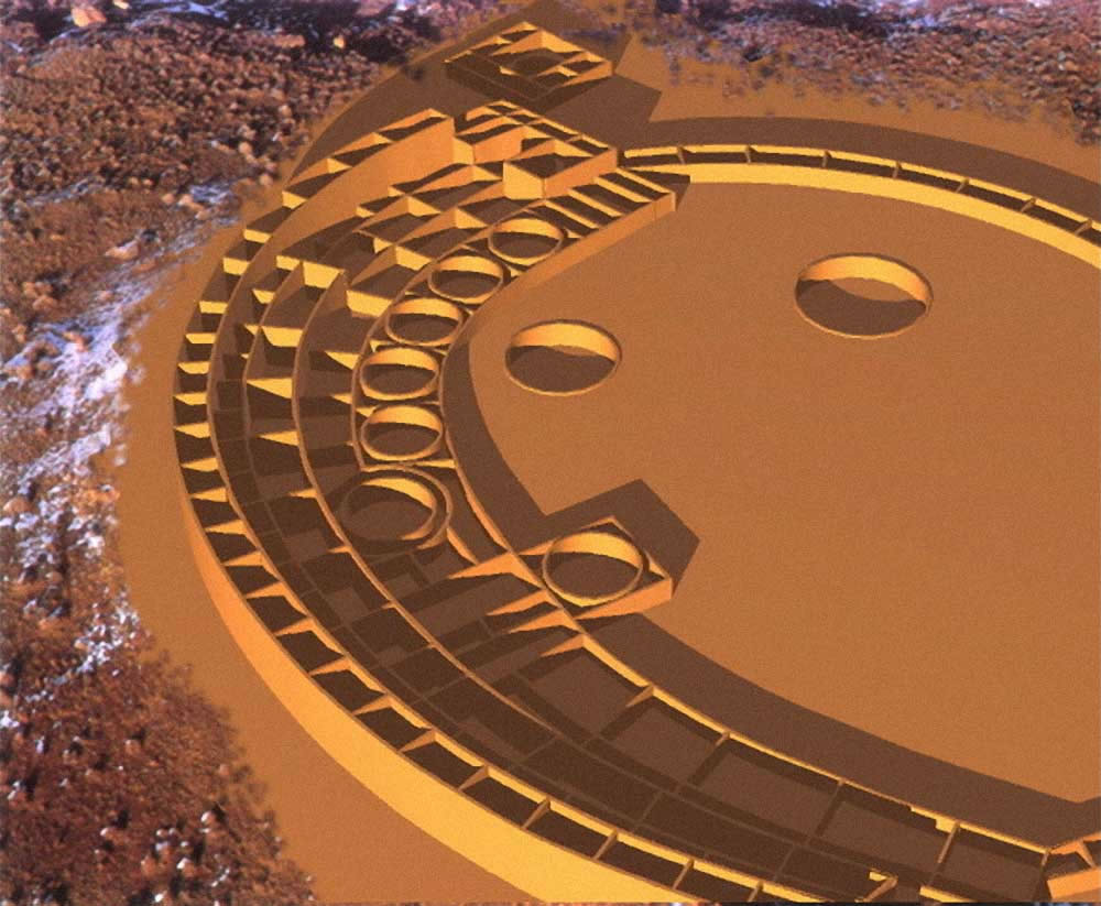 Chaco Culture, Chaco Canyon, New Mexico; 900 C.E. - 1125 C.E.; located in Chaco Culture National Historic Park. Elevation is 1908 meters (6260 feet) above sea level. Materials: mortarless stone walls, wood log roof structure, with mud/clay roof. Data for CG model: |