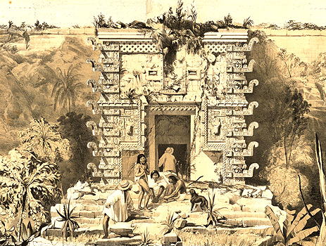 Above left: Gateway of the Great Teocallis, Uxmal, by Frederick Catherwood, 1844. Above right: Gateway of Casa del Gobernador, Uxmal, by Frederick Catherwood, 1844. Maya Civilization, 500 C.E. - 950 C.E..; located in Puuc Region, 62 km south of Merida, Yucatan, Mexico. Elevation is c. 53 meters (175 feet) above sea level. Materials: stone. Data for CG model: |