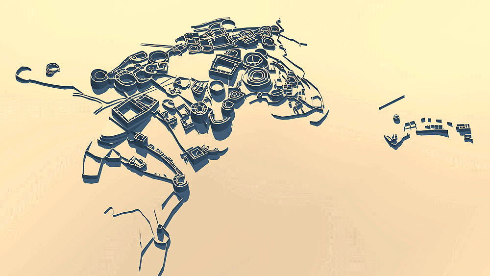 Photomontage of Yayno CG mode upon aerial view of actual site, looking north. Data for CG model: |